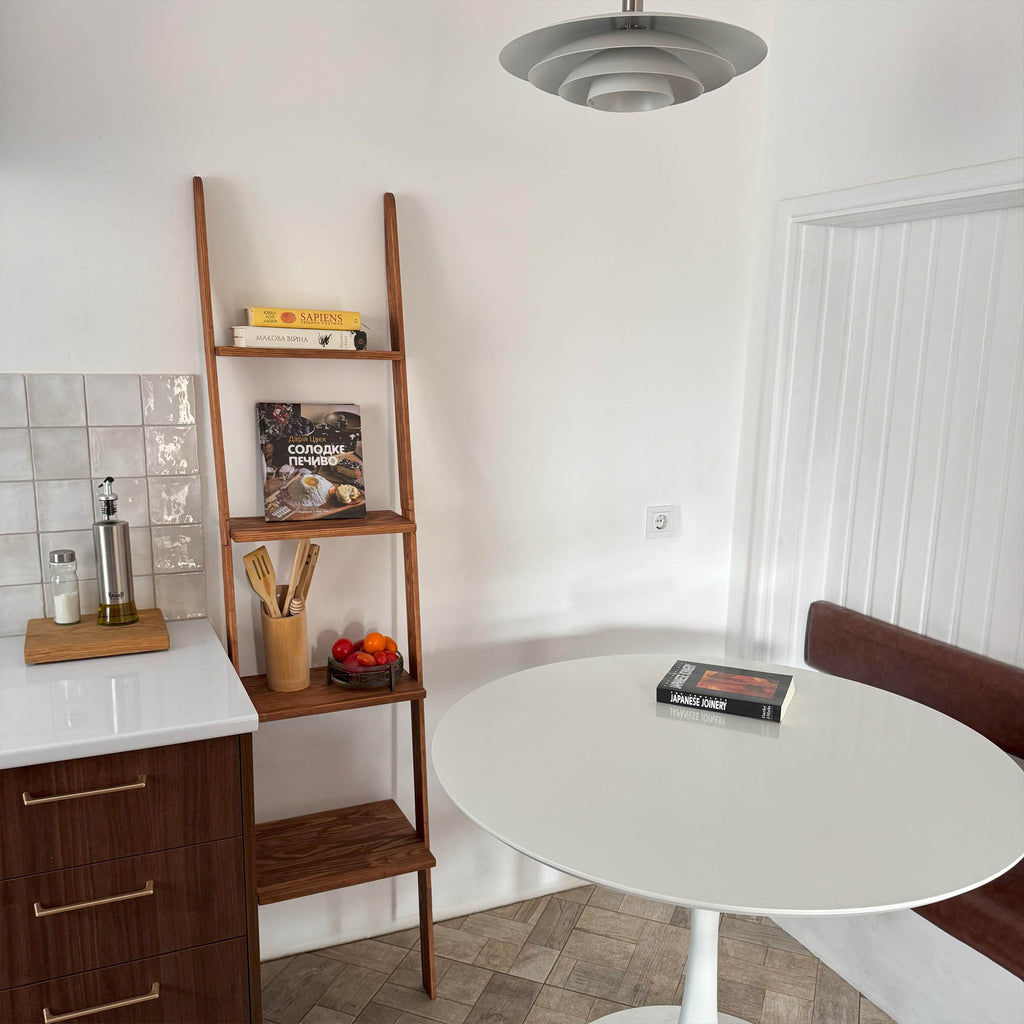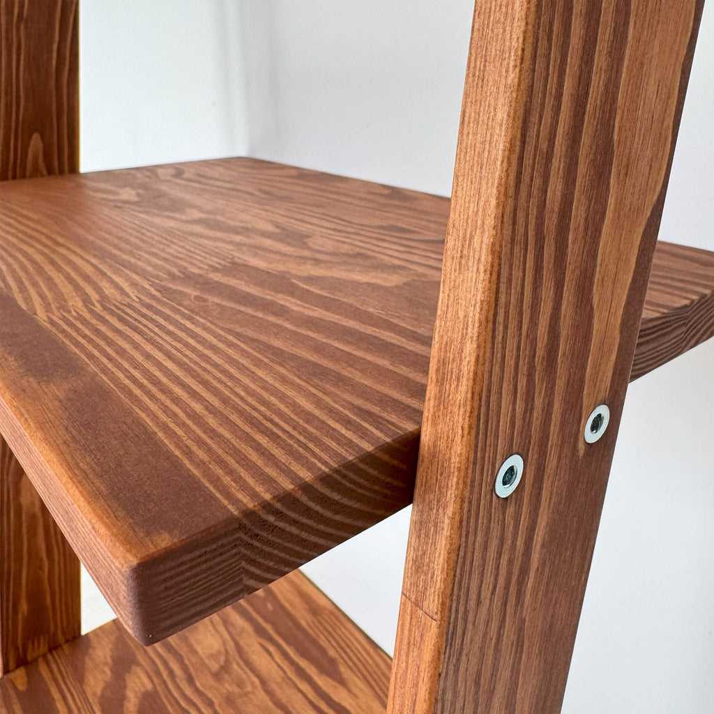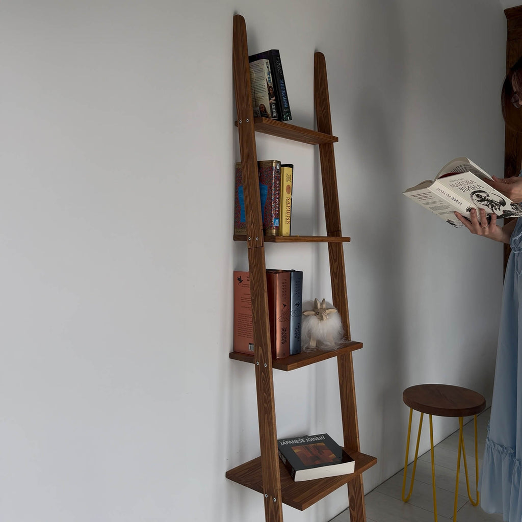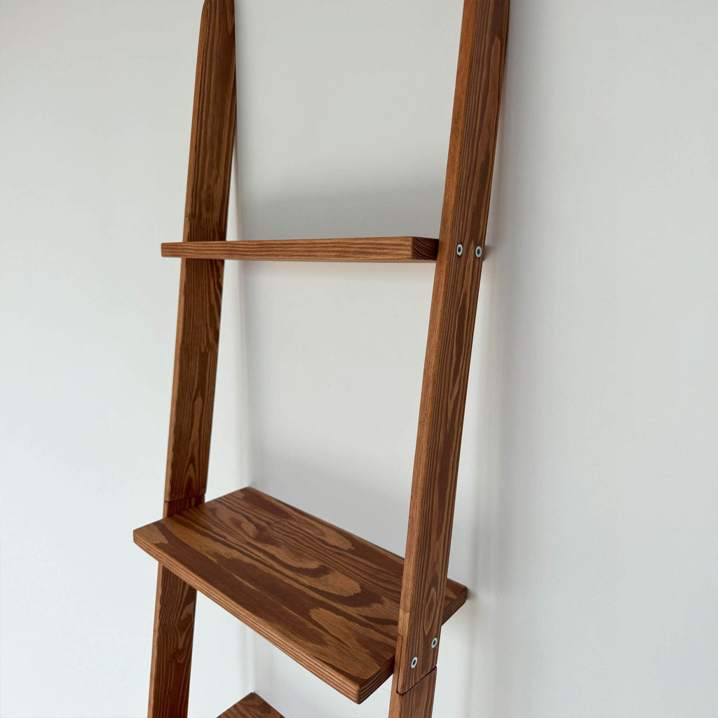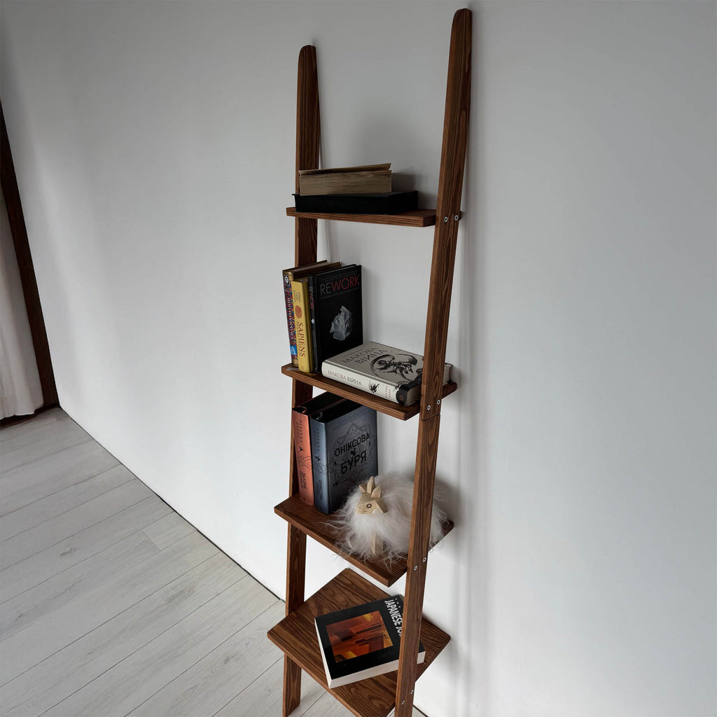 Етажерка-драбинка. Легка, компактна й універсальна. Ця дерев’яна етажерка у формі драбинки — зручне рішення для зберігання у ванній кімнаті, передпокої чи спальні. Лаконічна форма та натуральне покриття додають затишку, а конструкція не потребує кріплень — просто поставте до стіни.