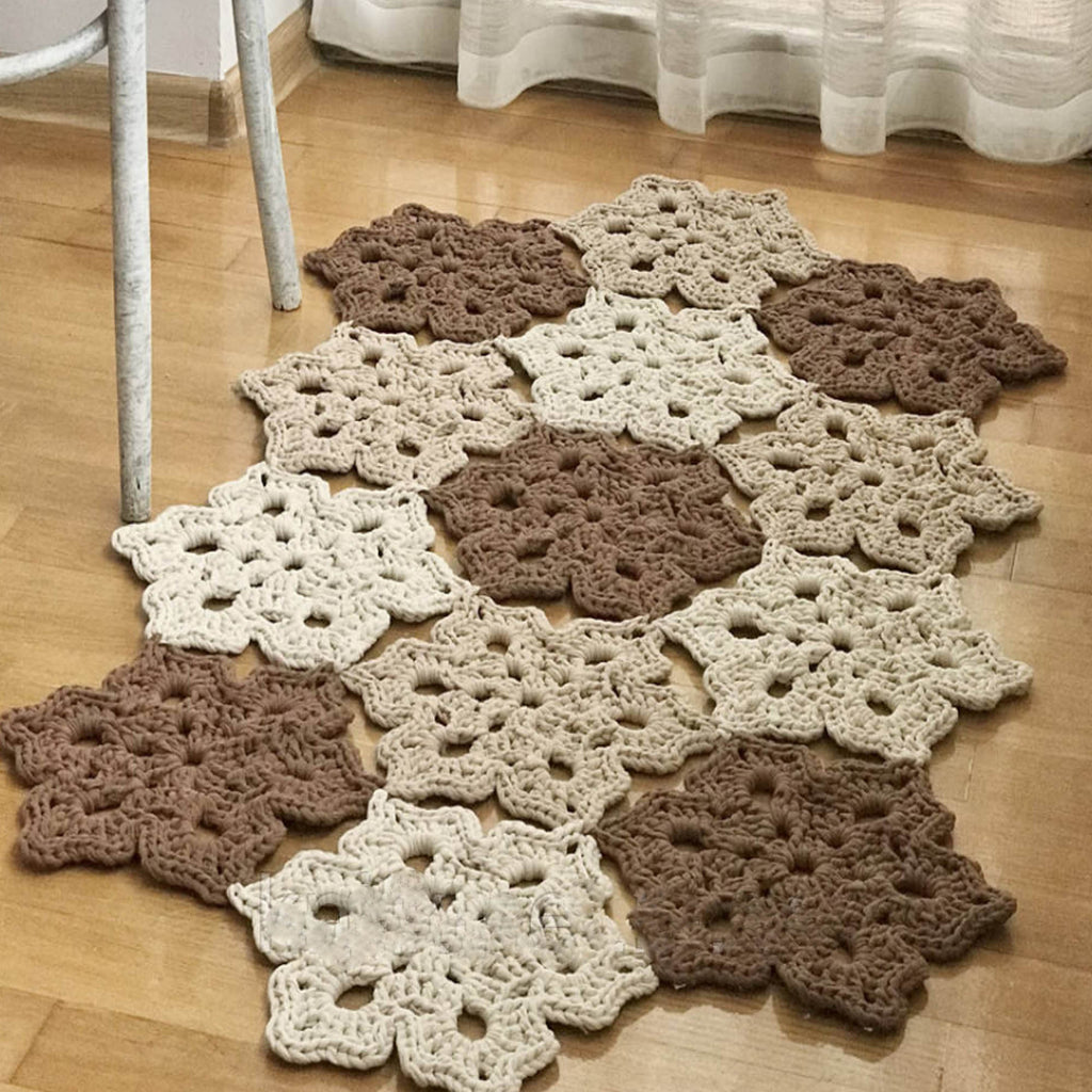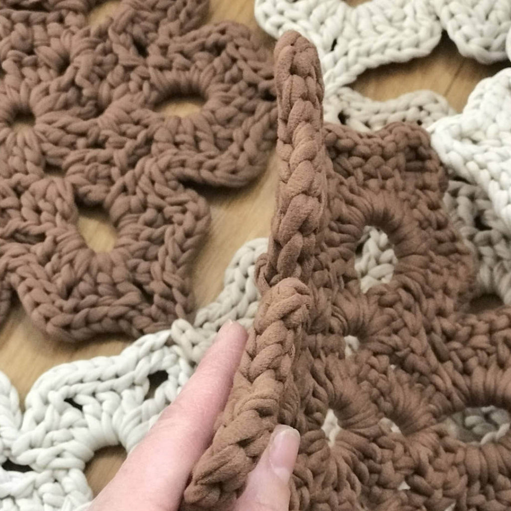 Авторський килим ФЛОВЕРС. Декоративний приліжковий килимок,стильний декор в дитячу, у ванну кімнату, кухню, коридор. Виготовлено із трикотажної пряжі. При невеликому забрудненні килим можна протерти вологою губкою з милом.