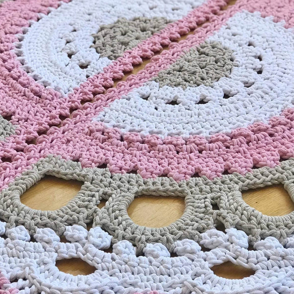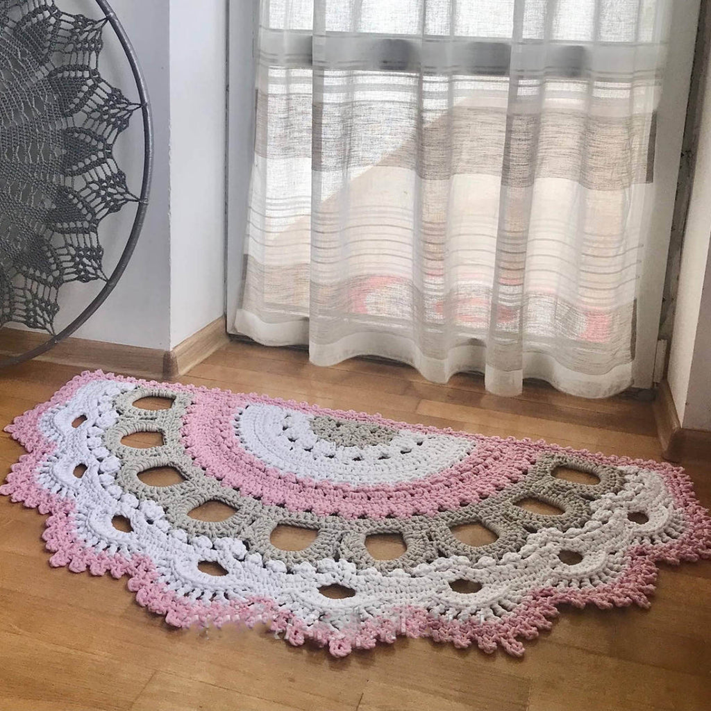 Килим із бавовняного шнура. Забезпечить приємний масаж для ваших ніжок. Така форма килима досить зручна в будь-якому місці вашої оселі: біля дверей, комоду, дивану, шафи, умивальника, ванни.