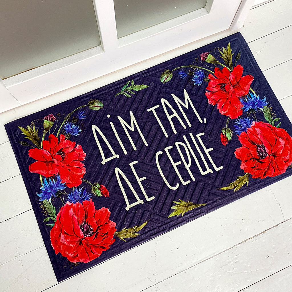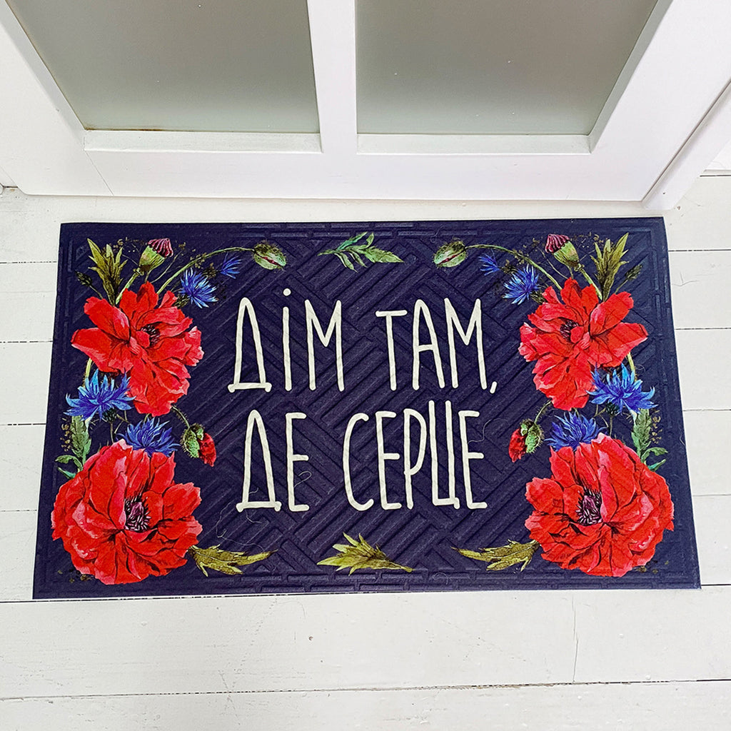 Килимок придверний з принтом ДІМ ТАМ, ДЕ СЕРЦЕ