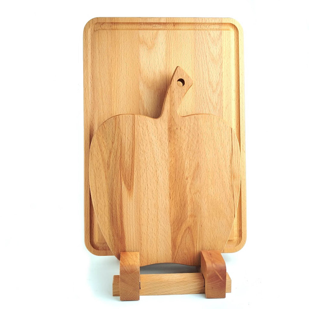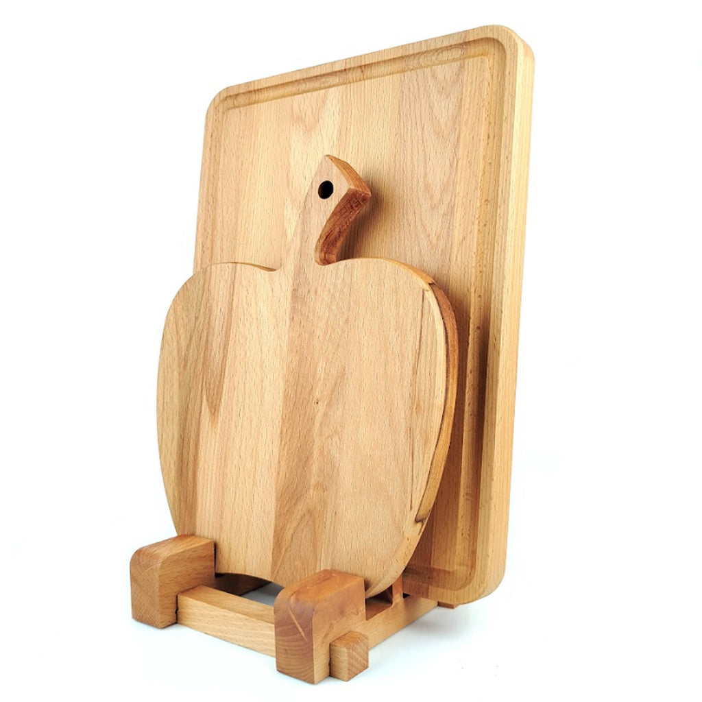 До вашої уваги оригінальний набір кухонних дошок з масиву деревини. В комплект входить: дошка з жолобом 36х25 см (товщина 2,3 см) та дошка у формі яблука з ручкою 28х22 см (товщина 2,3 см), а також зручна підставка на 2 секції. Покриття: олія з воском для кухонного начиння. Обираючи набір FRESH ви отримаєте - якісний, екологічний та зручний аксесуар для вашої кухні.