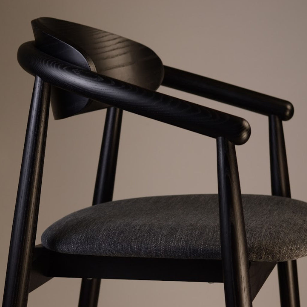 Напівбарний стілець MAMONT SEMI-SOFT із підлокітниками та шпонованою спинкою – витончене й зручне рішення для інтер’єру, що поєднує стиль, природні матеріали та практичність. Виготовлений із міцного натурального ясена, він демонструє високу якість та майстерність у сучасному меблевому дизайні.