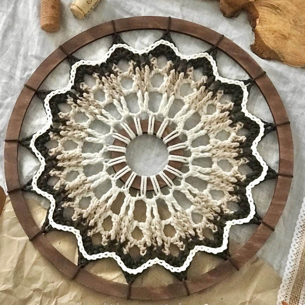 Панно 32 см, ручна робота — елегантна в’язана прикраса для інтер’єру, що поєднує природність матеріалів і витонченість ручної праці. Ажурний візерунок створює відчуття легкості та спокою, додаючи затишку вашому дому. Таке панно чудово виглядає у вітальні, спальні чи творчому куточку, підкреслюючи індивідуальність простору.