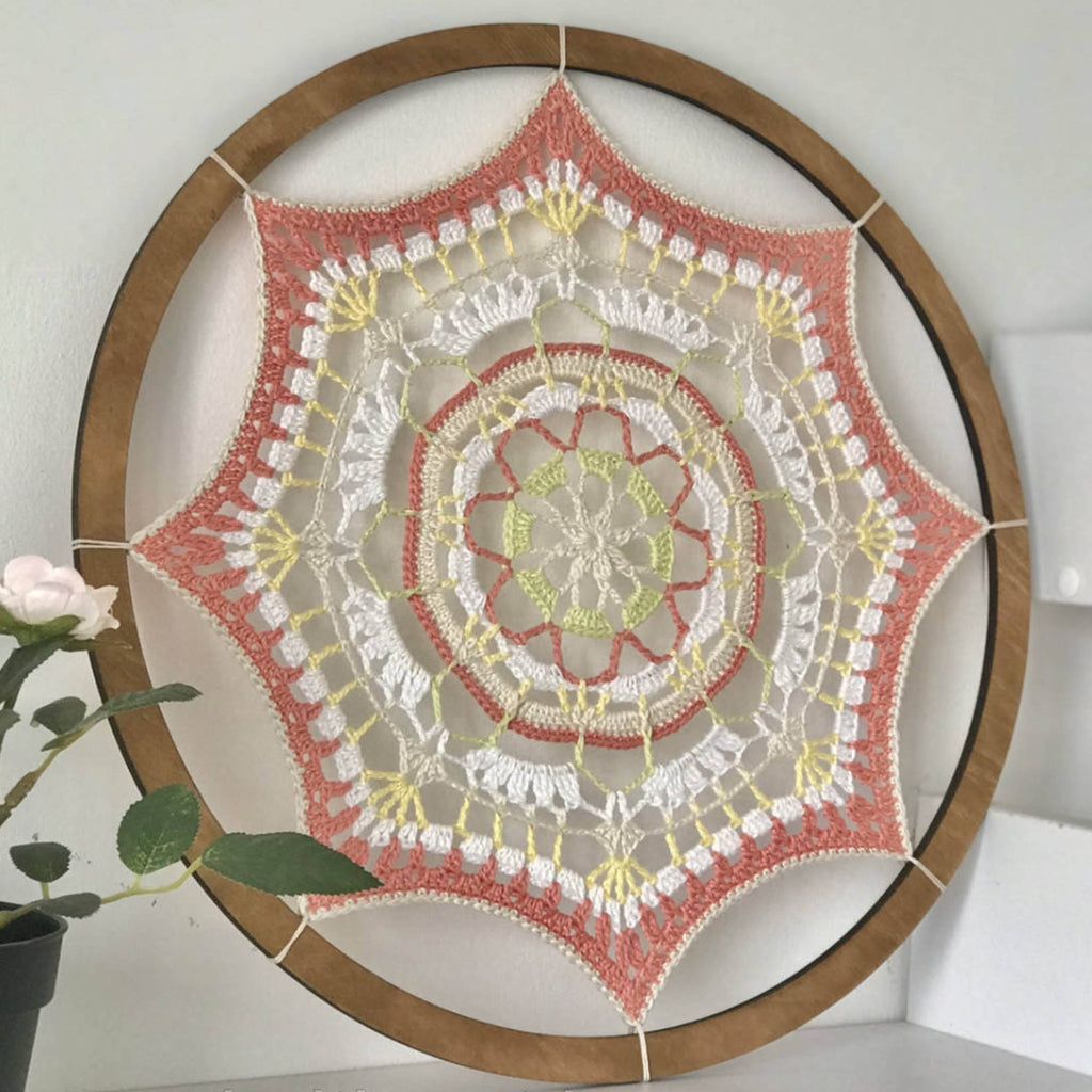 Панно декоративне. Мандала на стіну або поличку. Каркас фанера 0,6 см. Нитки бавовна 100%. Оригінальний стильний декор для дому.