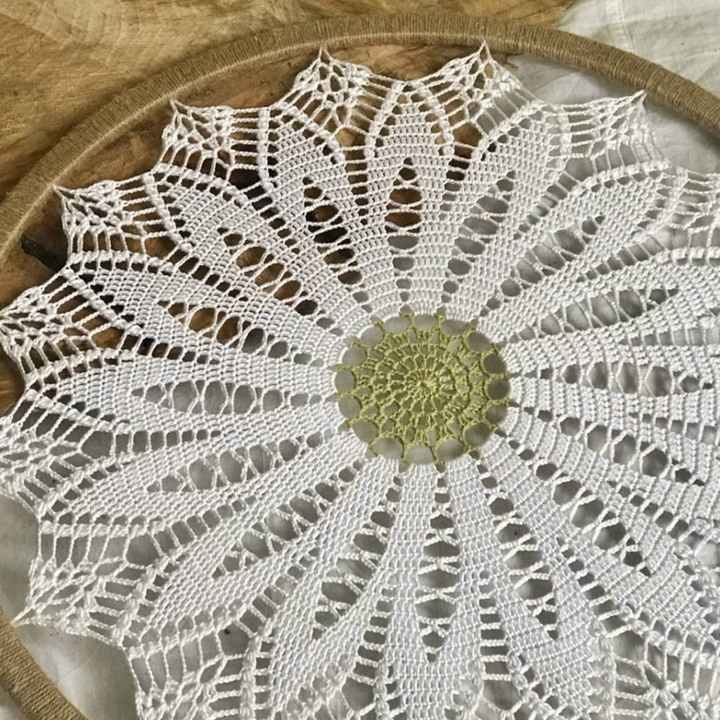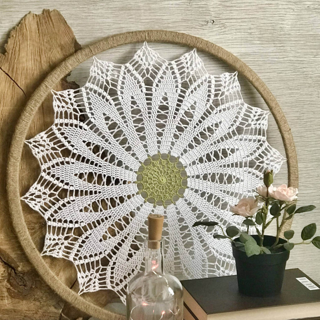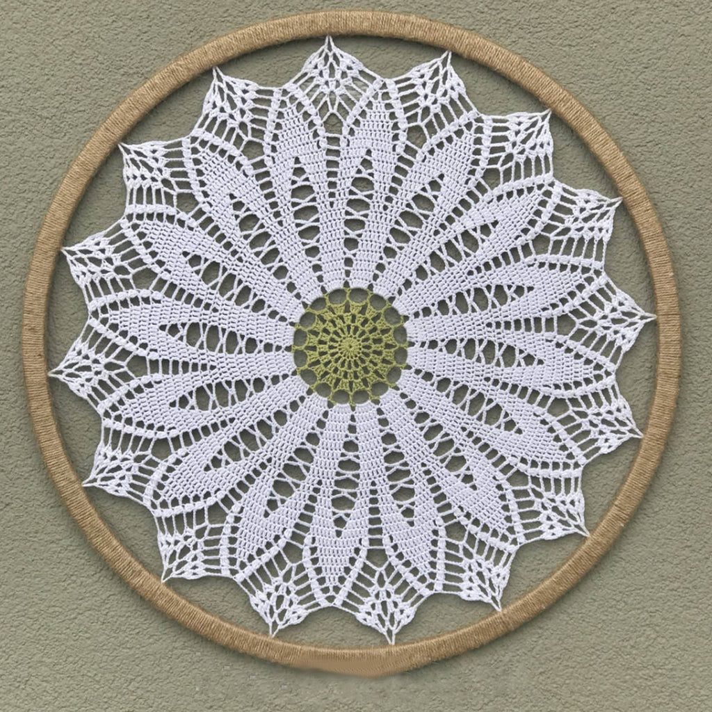 За мотивами квітки Хризантема Бакарді. Панно із бавовняних ниток 100%, розмір 50 см. Інтер'єрний декор на стіну, поличку.