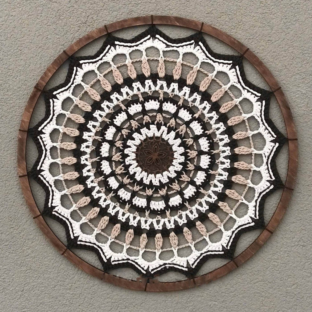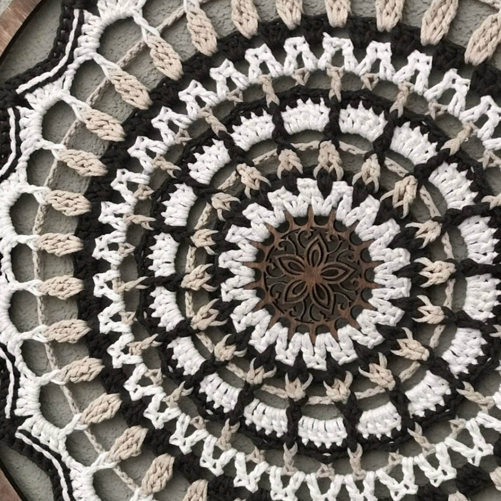 Панно РОЗАЛІЯ 50 см — вишуканий елемент інтер’єру, що поєднує ніжність візерунку та тепло ручної роботи. Кругла в’язана мандала створює атмосферу гармонії, затишку та спокою, чудово пасує до будь-якого стилю — від мінімалізму до бохо. Такий декор стане гарним акцентом у спальні, вітальні чи творчому просторі.