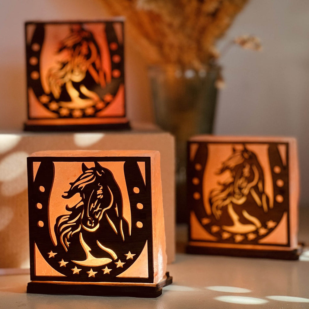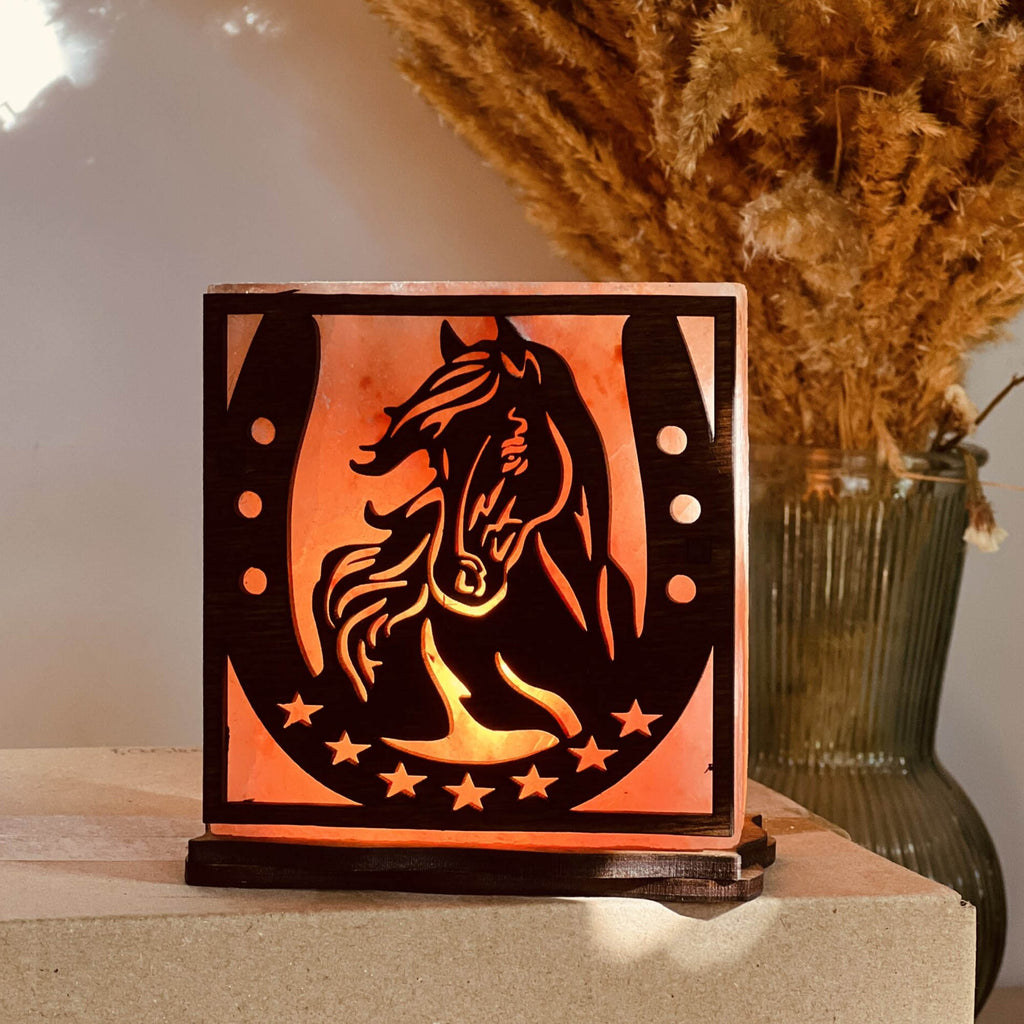 Соляна лампа КІНЬ З ПІДКОВОЮ — чарівний нічник із натуральної гімалайської солі. Вона створює м’яке, тепле світло, яке наповнює приміщення затишком та гармонією. Лампа також виконує функцію природного іонізатора повітря. Світло можна регулювати за допомогою світлорегулятора, підлаштовуючи його під будь-який настрій.