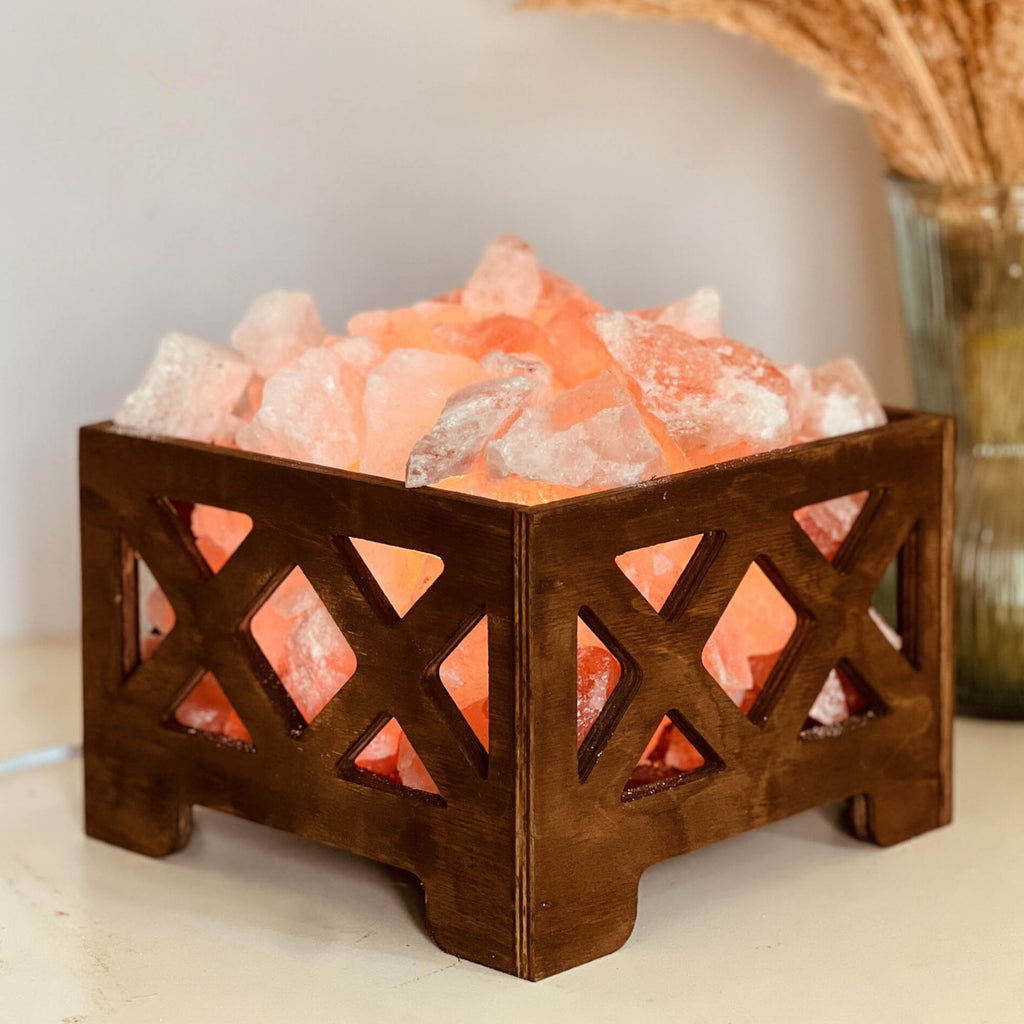 Соляна лампа КОРЗИНКА XI — ручна робота з гімалайської солі, що створює затишну та спокійну атмосферу у кімнаті. Лампа виконує функцію природного іонізатора повітря та має регулятор світла для комфортного налаштування яскравості. Кожен виріб унікальний за кольором та текстурою.
