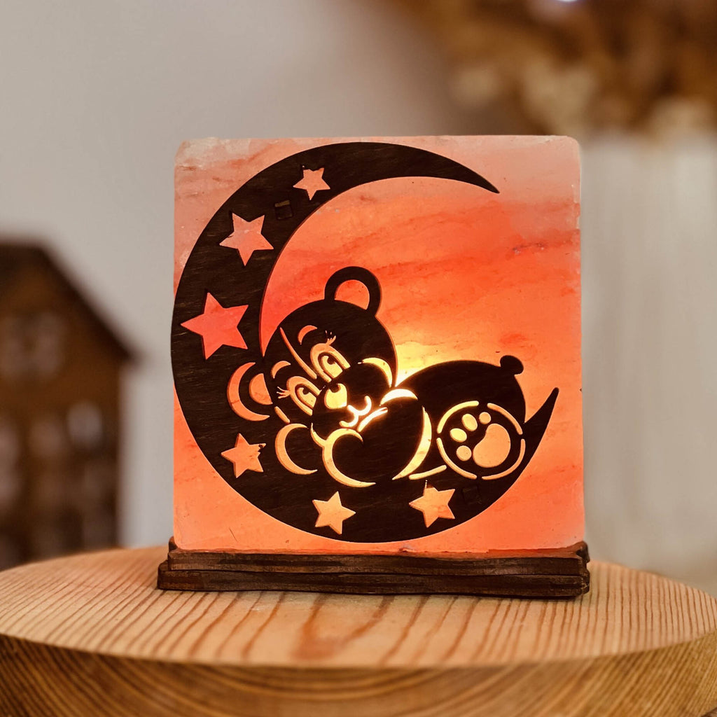 Соляна лампа ВЕДМЕДИК НА МІСЯЦІ — чарівний нічник із натуральної гімалайської солі, який створює м’яке та приємне світло, надаючи затишку будь-якому приміщенню. Лампа також виконує функцію природного іонізатора повітря. Світло регулюється за допомогою світлорегулятора, що дозволяє підлаштувати його під настрій та обстановку.