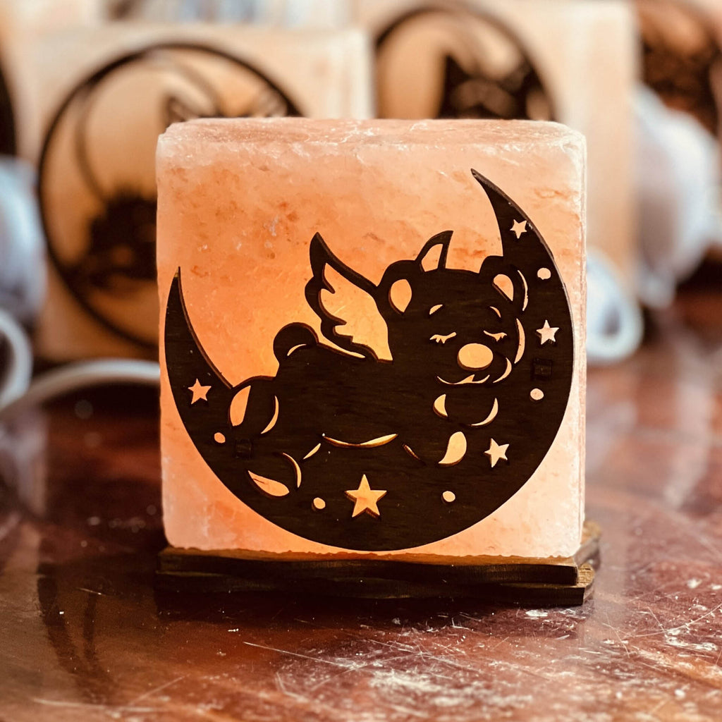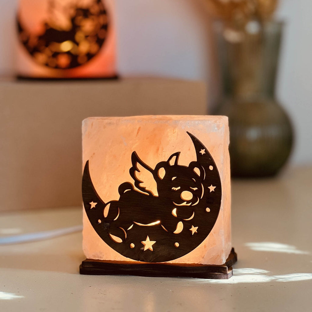 Соляна лампа ВЕДМЕДИК З КРИЛАМИ — компактний та оригінальний нічник, виготовлений з натуральної гімалайської солі. Лампа створює м’яке, приємне світло та працює як природний іонізатор повітря. Світло регулюється за допомогою світлорегулятора, що дозволяє налаштовувати його під будь-який настрій.