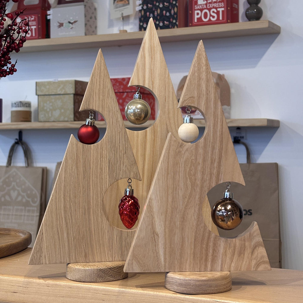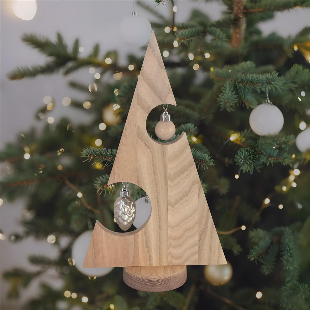 Лаконічна декоративна ялинка з натурального ясена — стильний та екологічний акцент для новорічного інтер’єру. Природний колір і виразна текстура деревини роблять кожен виріб унікальним. Чудово підходить для сучасних, еко- та мінімалістичних просторів.