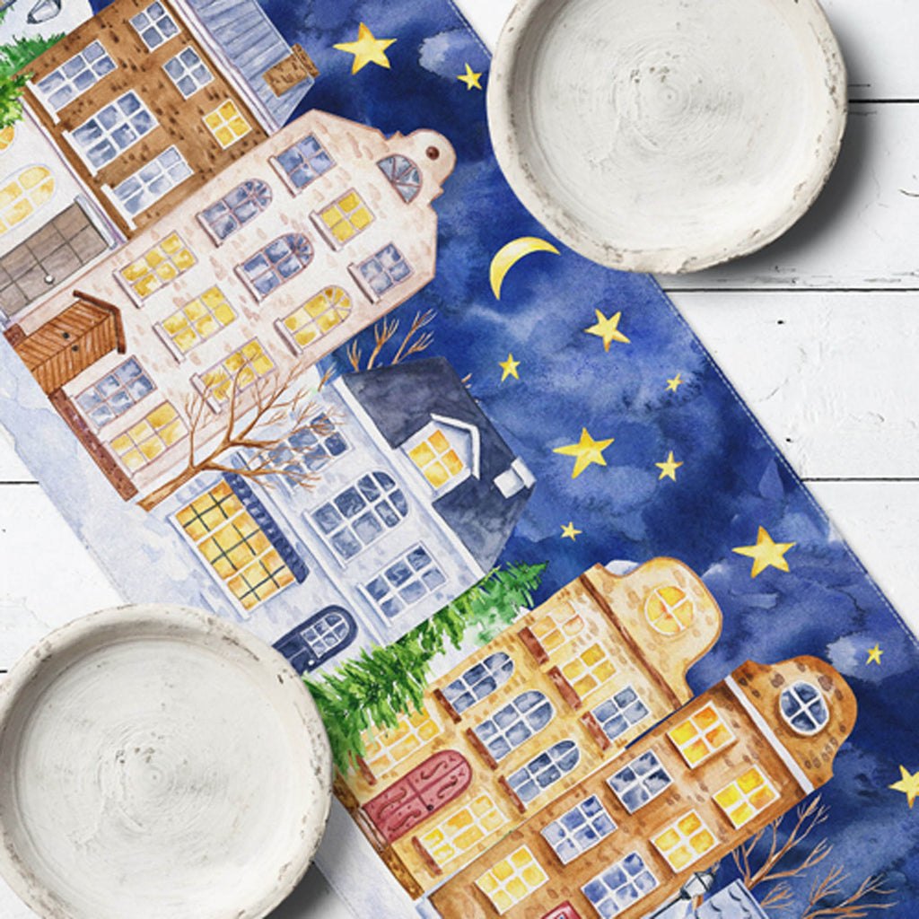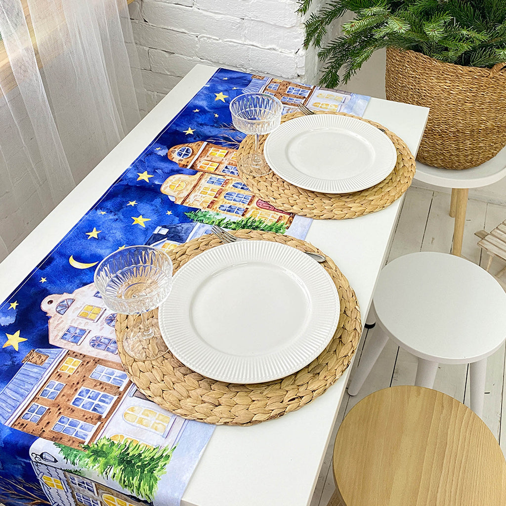 Дорожка на стол В ОЖИДАНИИ ЧУДА — нежный и уютный акцент для вашего праздничного стола. Атмосферный принт создает ощущение предвкушения рождественского чуда и добавляет интерьеру тепла.