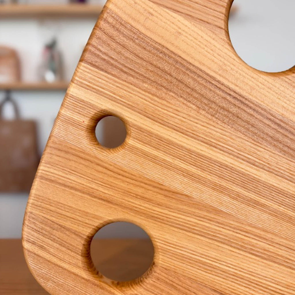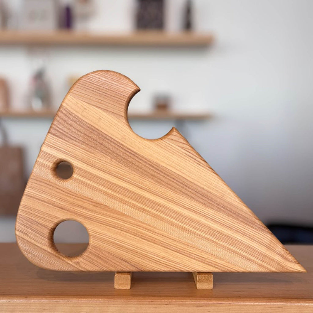 Доска в виде сыра, изготовлена из натуральной древесины, имеет уникальный дизайн, идеально подойдет для подарка.