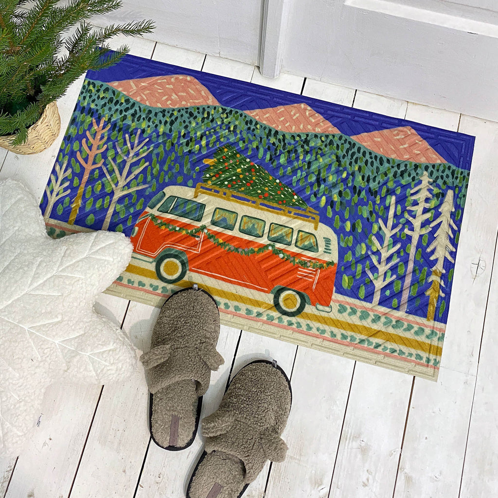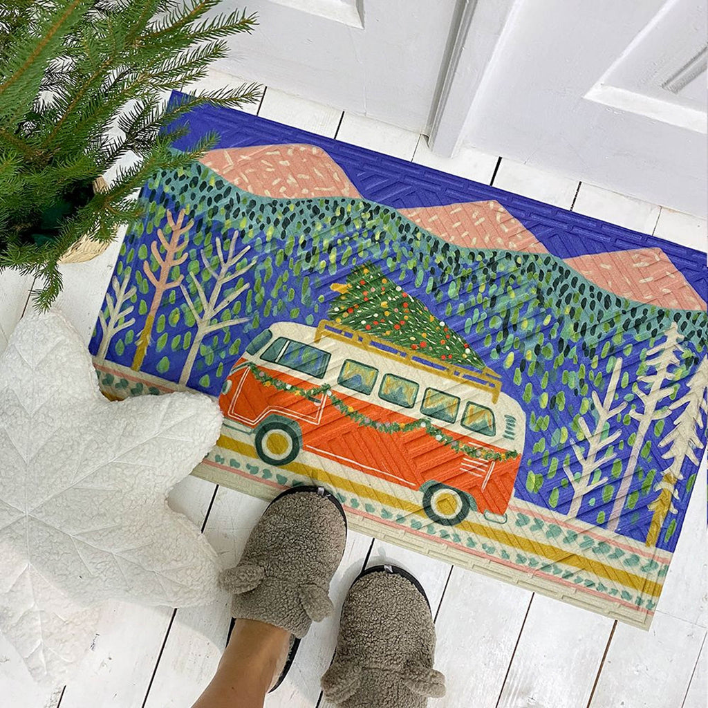 Коврик привратный с принтом АВТОБУС С ЕЛОЧКОЙ