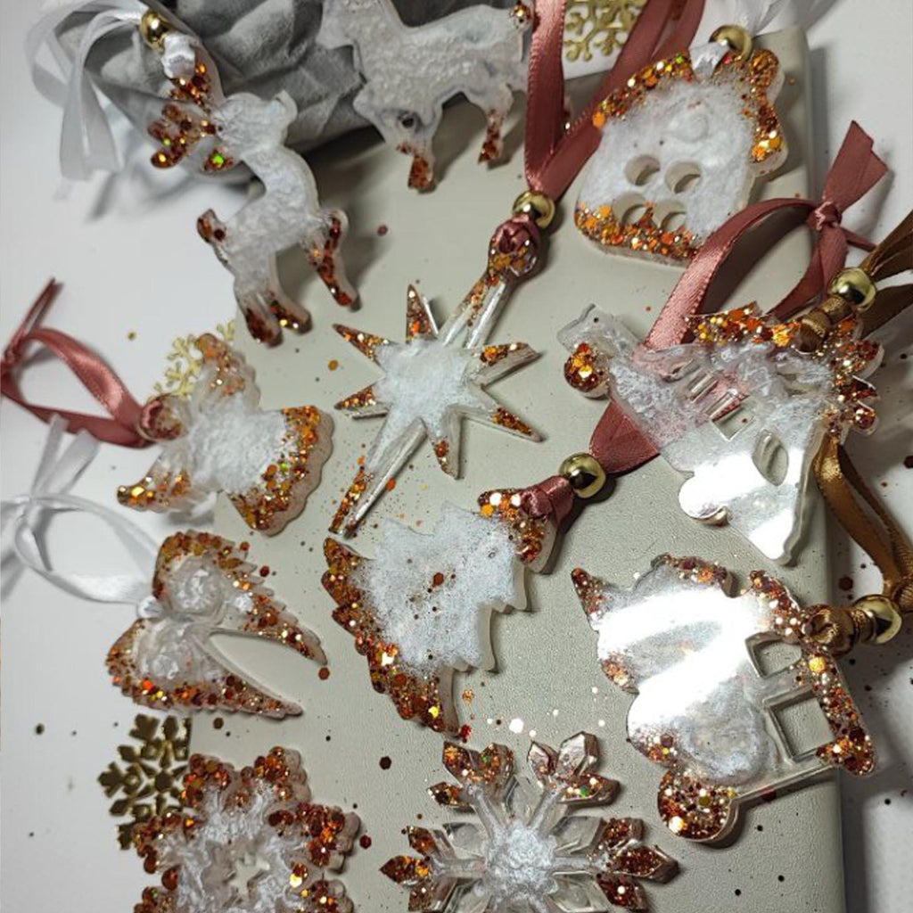 Добавьте праздничной магии вашей ёлке с уникальным набором игрушек ручной работы из эпоксидной смолы. Каждое украшение создано с любовью — блестящий глиттер, нежный перламутр и неповторимые сочетания цветов делают эти игрушки настоящим украшением новогоднего декора. Идеальный вариант для подарка или для создания уютной атмосферы дома.