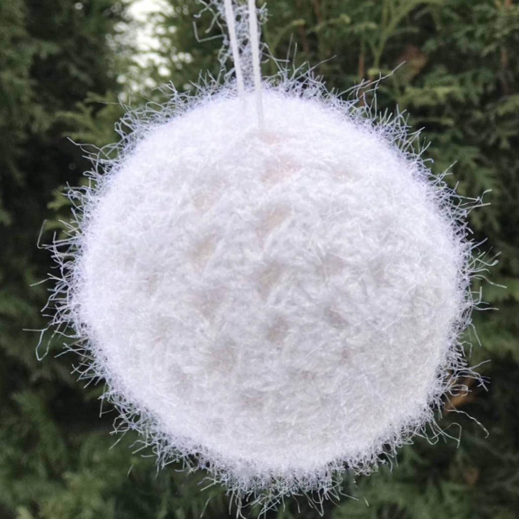 Игрушка на елку вязаная ручной работы. Безопасный и стильный декор на елку, оригинальные эко украшения, которые останутся у вас на много лет. Также такими шарами можно декорировать окно на праздничный период или повесить на стену. Цвет классический - белый. Внутри пенопластовый шар.