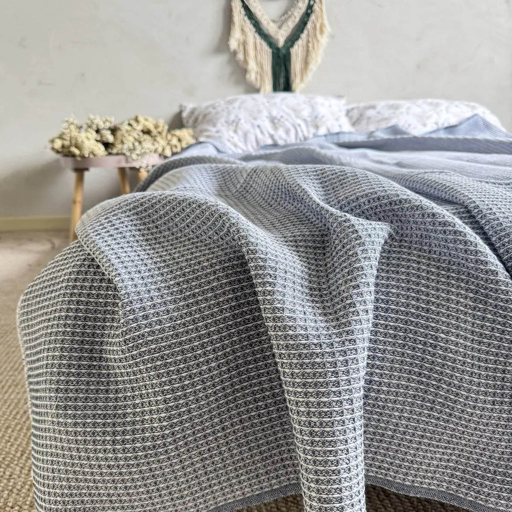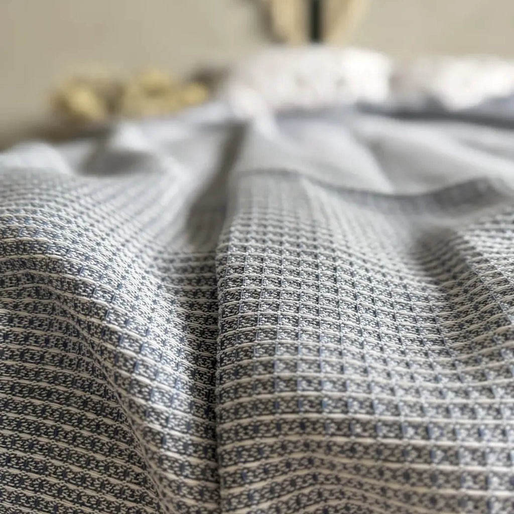 Плед бавовняний BELGIUM, синій — стильний євро-плед у глибокому синьому відтінку, що стане акцентом у сучасному інтер’єрі. Виготовлений з 70% бавовни та 30% акрилу, має щільність 300 г/м², що забезпечує м’якість, комфорт і довговічність. Розмір 200 х 220 см ідеально підходить для великого ліжка або дивана. Лаконічний дизайн без бахроми виглядає акуратно та сучасно. Підходить для машинного прання.