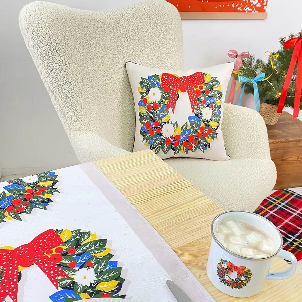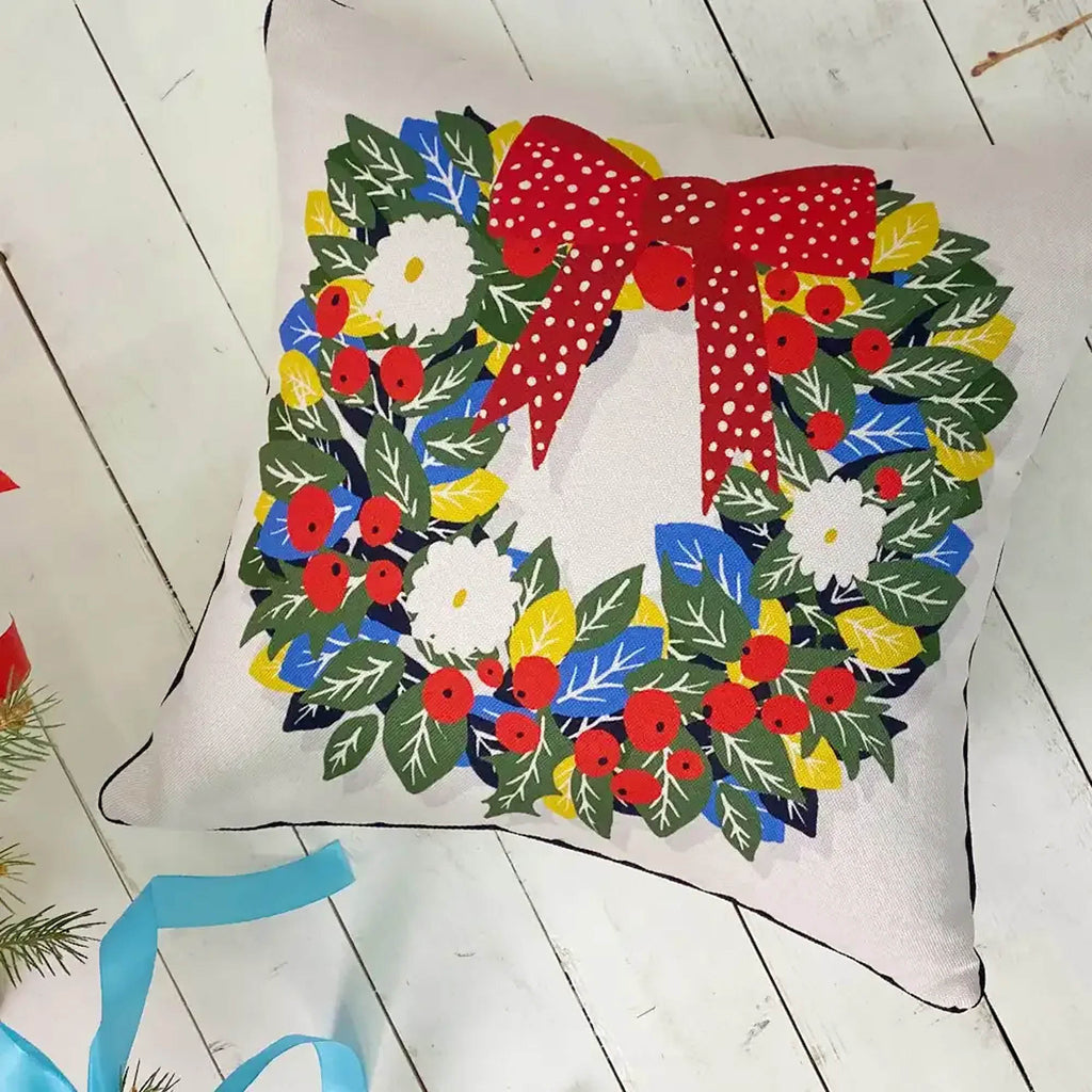 Декоративная подушка РОЖДЕСТВЕНСКИЙ ВЕНЕЦ — стильная декоративная подушка, которая добавит уюта и праздничного настроения вашему интерьеру. Идеально подходит для оформления гостиной, спальни или в качестве подарка.