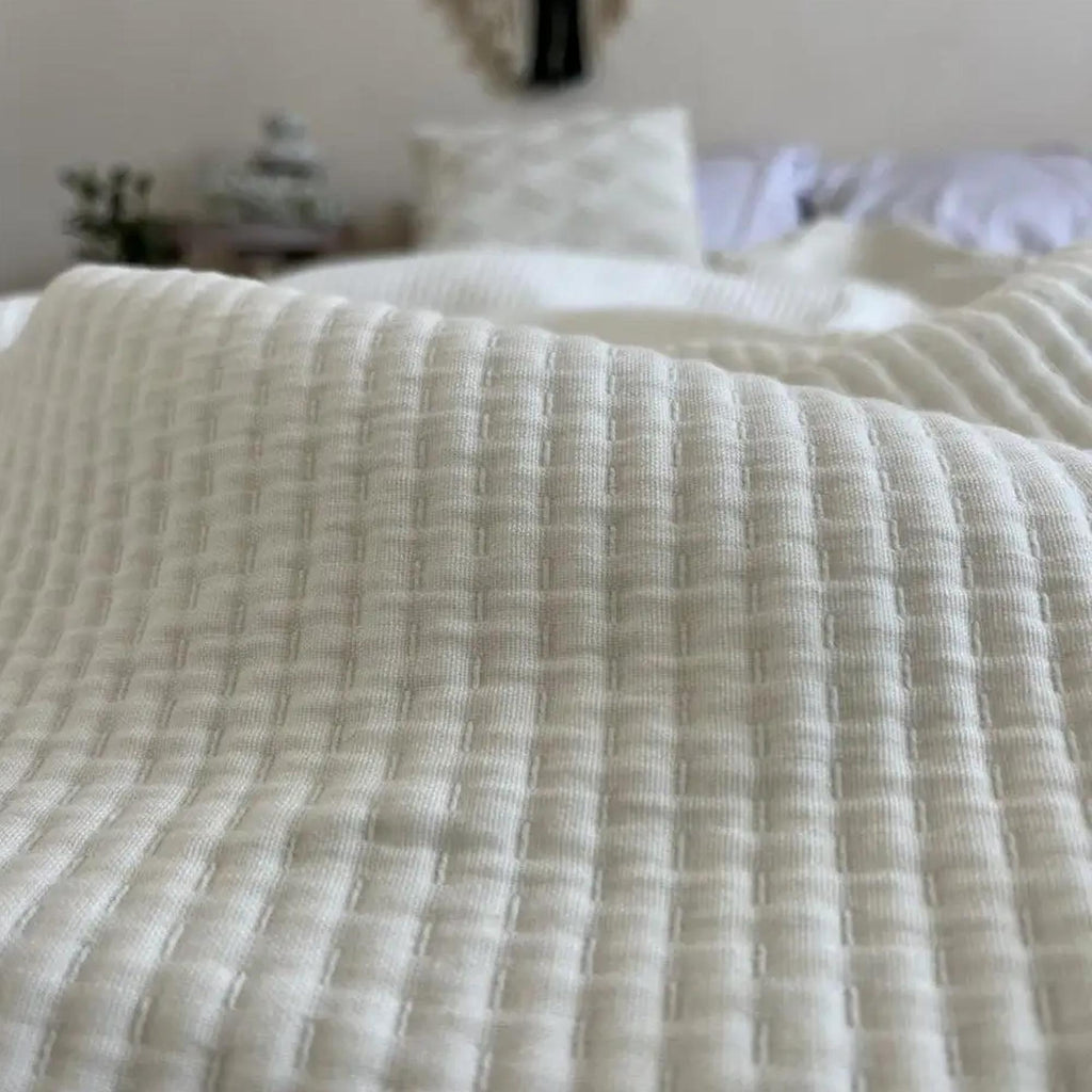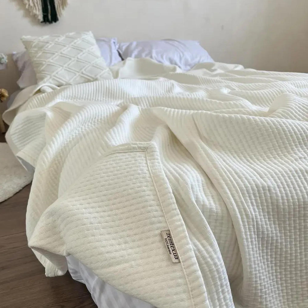 Хлопковое покрывало OSLO, молочный — стильное и уютное покрывало из натурального хлопка для повседневного комфорта. Мягкая ткань приятна на ощупь, хорошо пропускает воздух и подходит для любого времени года. Молочный оттенок добавляет интерьеру света, лёгкости и элегантности. Идеально подходит для спальни или зоны отдыха.