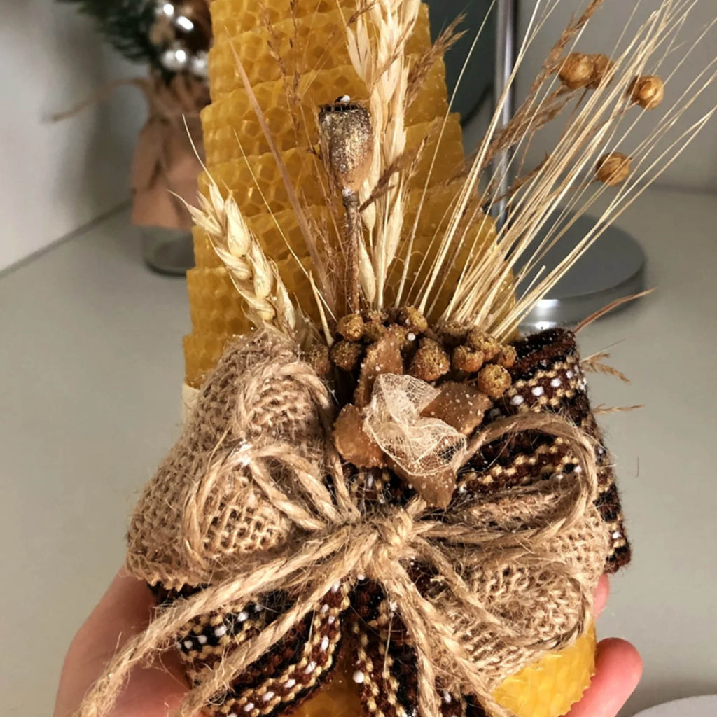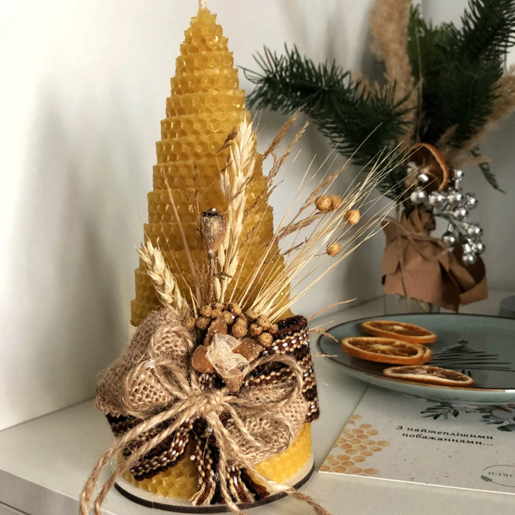 Свеча-елка из вощины 21 см — декоративная свеча, изготовленная вручную из натурального пчелиного воска. Идеально подходит для создания уютной атмосферы, праздничного настроения или как оригинальный подарок.