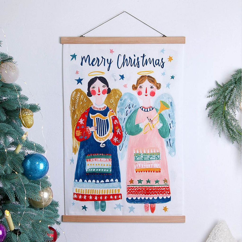 Декоративний постер MERRY CHRISTMAS створює святкову атмосферу у будь-якому інтер’єрі. Верхня планка з натурального дерева оснащена мотузкою для легкого кріплення на цвях, кнопку або будь-яке інше кріплення. Нижня планка фіксує тканину, щоб постер не закручувався.