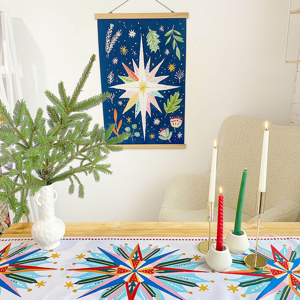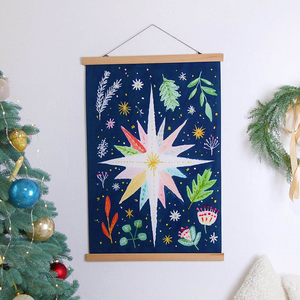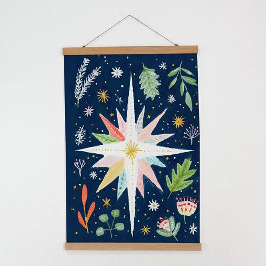 Тканинний постер на стіну РІЗДВЯНА ЗІРКА НА СИНЬОМУ ФОНІ