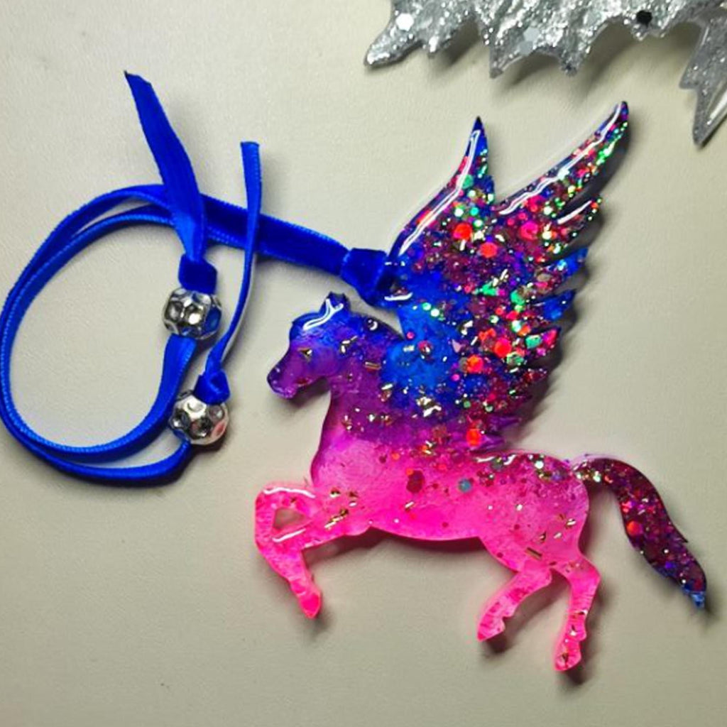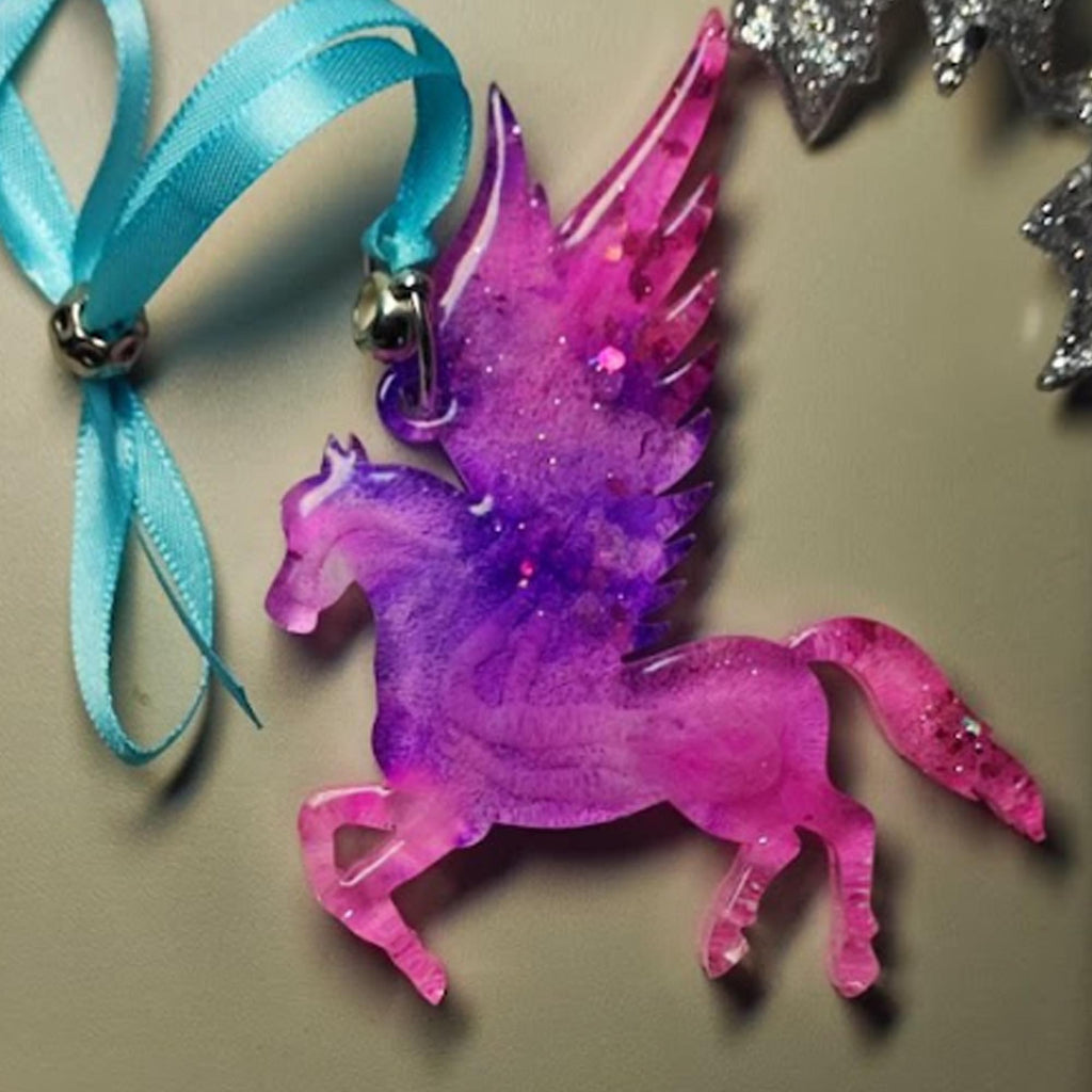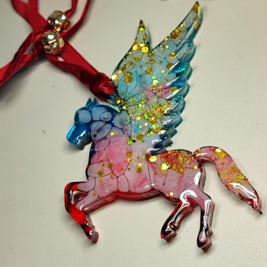 Ёлочная игрушка ЛОШАДЬ IV — изысканное украшение ручной работы, созданное из прозрачной эпоксидной смолы с добавлением перламутра и глиттера. Её элегантный силуэт лошади символизирует благородство и силу, а игра света на поверхности создаёт волшебное сияние на ёлке. Каждая игрушка изготовлена вручную, поэтому имеет свой неповторимый рисунок и оттенок. Поставляется в бархатном мешочке — идеальный выбор для подарка или стильного дополнения новогоднего декора.